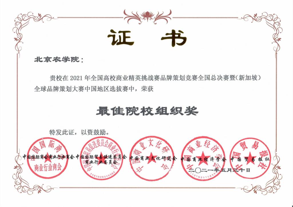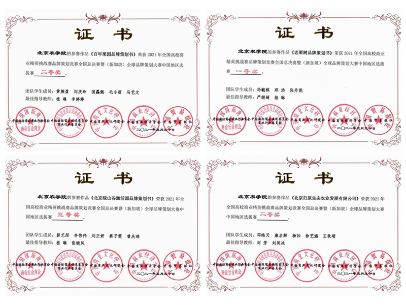 5月29日至2021年5月30日,世界杯官网经管学院、文发学院组建多个团队参加了全国高校商业精英挑战赛+品牌策划竞赛全国总决赛暨(新加坡)全球品牌策划大赛中国地区选拔赛。来自全国110所高校的299个参赛团队参加了激烈角逐,世界杯官网经管学院团队获得一等奖1项、二等奖2项、三等奖1项,文发学院会展经济与管理专业获得一等奖一项、三等奖两项。其中的《老栗树品牌策划书》斩获2021年全国总决赛一等奖并入围(新加坡)全球品牌策划大赛,成为18个参加新加坡全球品牌策划大赛的中国团队之一,也是北京参赛高校唯一一个进入全球赛的团队。