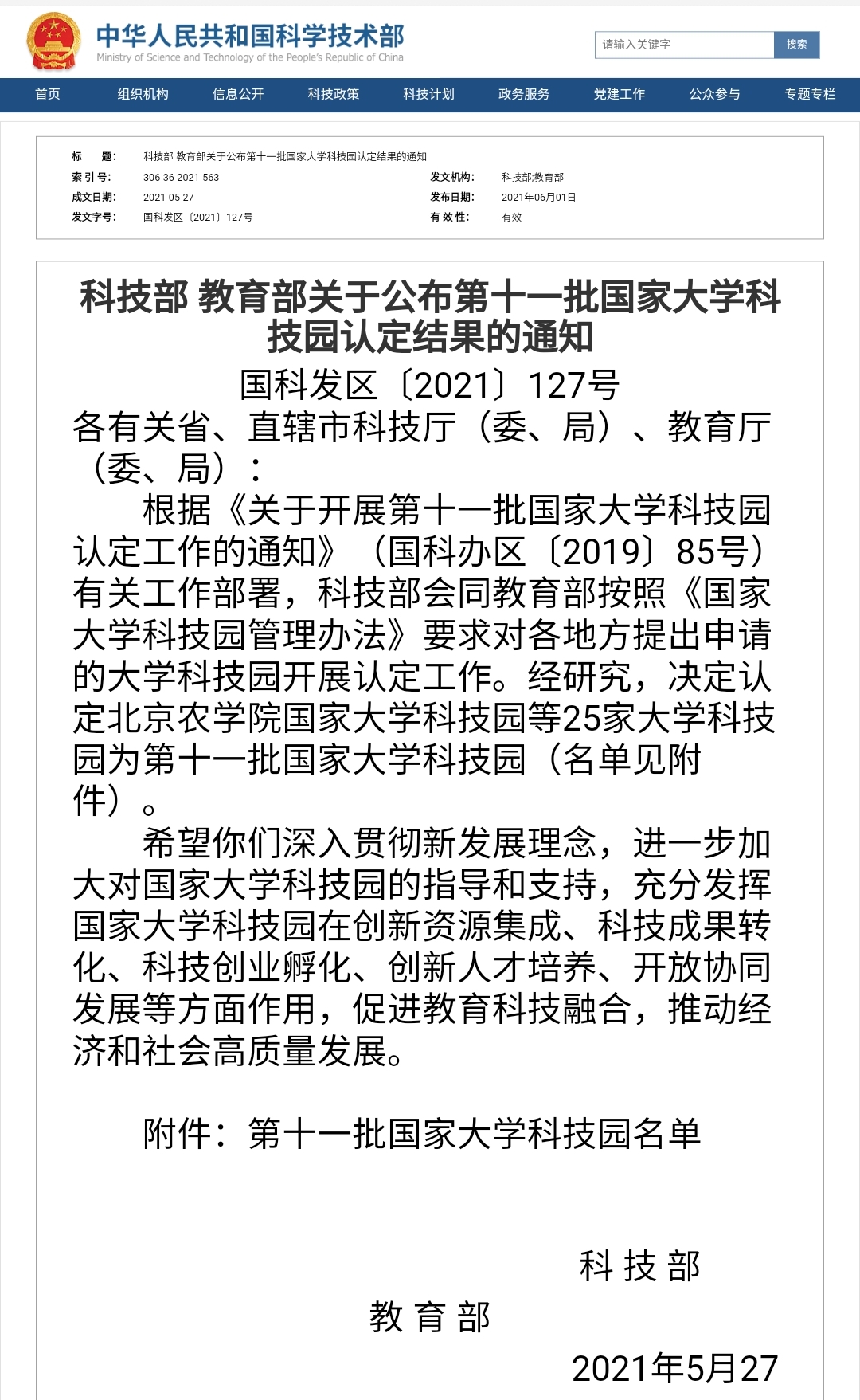 5月27日,科技部、教育部联合发布《科技部、教育部关于公布第十一批国家大学科技园认定结果的通知》(国科发区〔2021〕127号),世界杯官网大学科技园被认定为国家大学科技园。