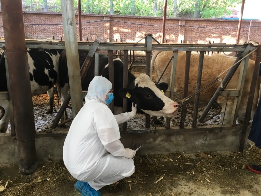 动科研究生志愿团队接到北京市平谷区顺阳光农场兽医报告,牛场需要采集所有奶牛血液样本。研究生志愿团队在指导教师倪和民和王相国组织下,迅速组织人员赴平谷顺阳光农场,在牛场工人的协助下,顺利地采集了270头奶牛的血液样本,对样本进行了离心并提取上层血清送到监察所进行送检。经过此次采血工作,研究生志愿团队一方面加强了对采血技术的认知及团队协作能力,另一方面在接到报告后能第一时间做出最快的反应,展现了志愿团队的高机动性。这次突发情况使志愿团队在实践方面有了更大的提升,也使团队的协作能力大大地加强。