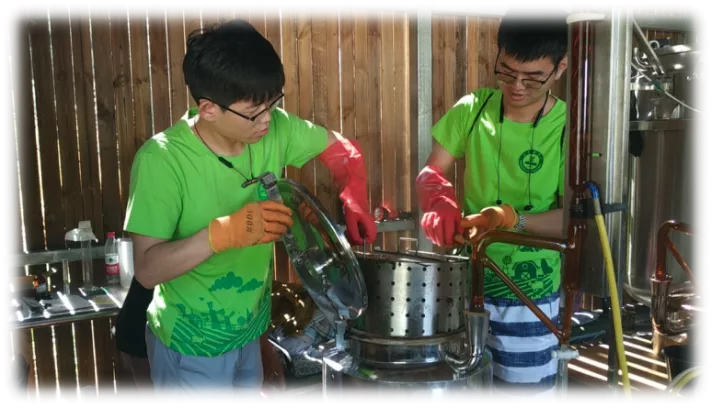 随后,党支部分为两组走进香草种植地,帮助当地村民下地除草,修缮沼气池,在村书记带领下,利用专业知识扦插玫瑰天竺葵万余株,对田间病虫害进行调查并给出防治建议。参与香草精油提炼,成功提取精油1升。学有所用,大大的提升了党员的积极性,也成了当地农民的小帮手。
