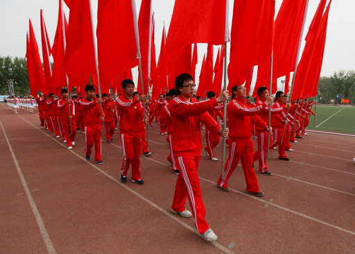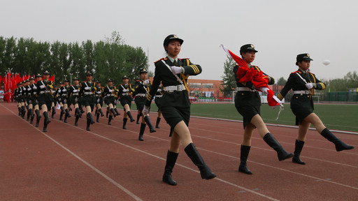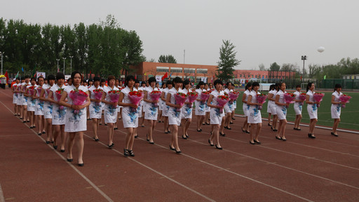 伴随着嘹亮的《运动员进行曲》,女子国旗班、红旗队、裁判方阵、主办学院教职工队伍以及10个学院方阵、研究生方阵、新疆少数民族汉语培训班方阵陆续入场,他们身着统一服装,高喊嘹亮口号,昂首阔步、精神抖擞地走过主席台。