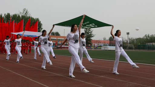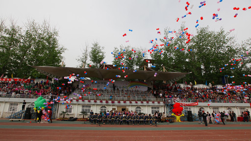 王慧敏宣布,第三十二届运动会正式开幕。场内顿时锣鼓喧天,五彩的礼炮,缤纷的气球共同装点着四月的田径场,场内全体师生起立欢呼,共同庆贺运动会的开幕。