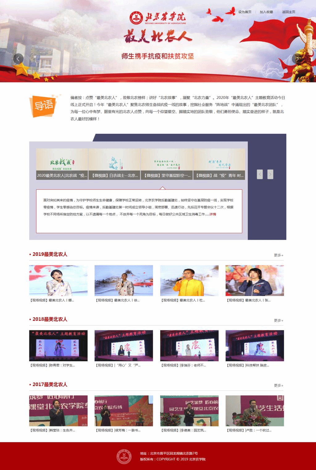 12月29日,“最美北农人·师生携手抗疫和扶贫攻坚”专题网站正式上线,标志着2020年“最美北农人”主题教育活动正式启动。2020年“最美北农人”主题活动聚焦北农师生奋战抗疫一线的故事,挖掘社会服务“阵地战”中涌现出的“最美北农团队”。2020年“最美北农人”主题活动将通过学校新闻网、官方微信等线上多媒体呈现。