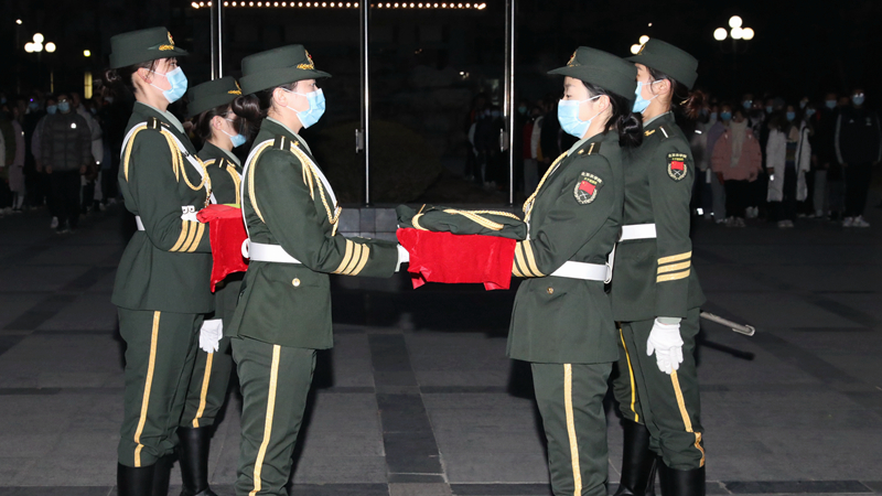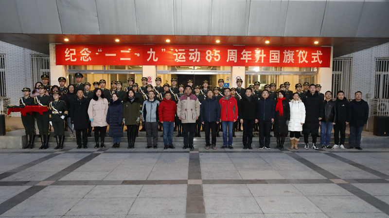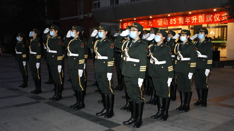 12月9日早晨7点,美加墨世界杯官网纪念“一二·九”运动85周年升国旗仪式暨女子国旗班换届仪式在行政楼前隆重举行。