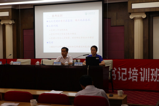 培训期间,党委副书记高东针对学生党建工作做了题为“实施‘育人雨露’工程,促大学生健康成长”的专题辅导报告。高东介绍了有关大学生党建和大学生思想政治教育工作的上级文件精神,对涉及学生党支部建设和学生党员教育培养的内容进行了重点解读,指出了学生思想教育工作中存在的问题,并提出了“支部争优秀、党员争先锋”的学生党建工作目标。