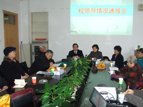 12月4日下午,学校召开2007年度校领导情况通报会。党委书记王慧敏、院长王有年分别通报了学校一年来的党务和行政工作。会议由离退休党总支书记马俊云主持,离退休老领导、离休干部和离退休工作处同志参加会议。