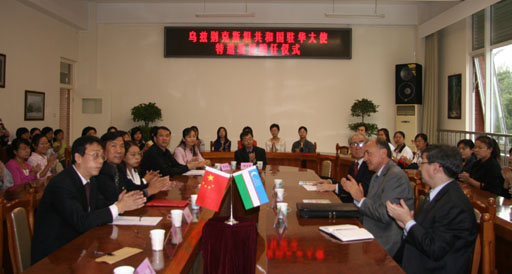 9月20日,世界杯官网在教B209会议室举行了隆重的聘任仪式,聘任乌兹别克斯坦共和国驻华特命全权大使诺西尔容・优苏波夫先生为世界杯官网政法系特邀教授。政务参赞库尔巴诺夫先生也一同到世界杯官网参观,世界杯官网副院长杜晓林热情接待了来访外宾。