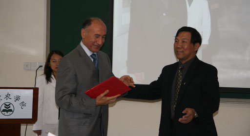 杜晓林副院长首先致辞,对诺西尔容・优苏波夫大使先生的来访表示热烈的欢迎。随后杜晓林副院长宣读了聘任决定,向大使先生颁发了聘书。