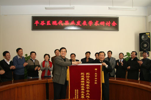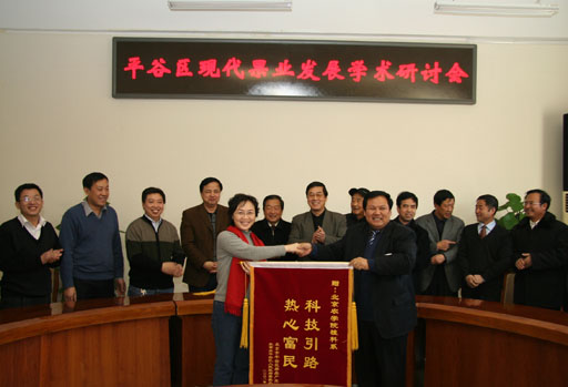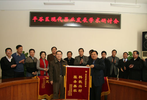 1月6日上午,平谷区现代果业研讨会在世界杯官网教B209举行。院长王有年、副院长郑一淳,平谷区原副区长、大桃协会会长傅朝永,人大常委会副主任、果办主任邢彦峰出席会议,党政办、科技与研究生处、植科系、经贸系、生物技术系负责人和平谷区果办领导和技术人员近50人参加了此次研讨会。会议由郑一淳主持。