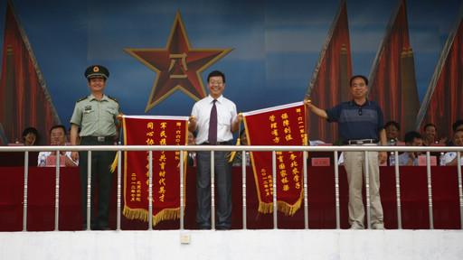 仪式上,姚允聪向承训部队和北京康庄611军训基地分别赠送锦旗,对他们在这13天里为全体军训学员所付出的一切辛苦表示由衷的感谢。