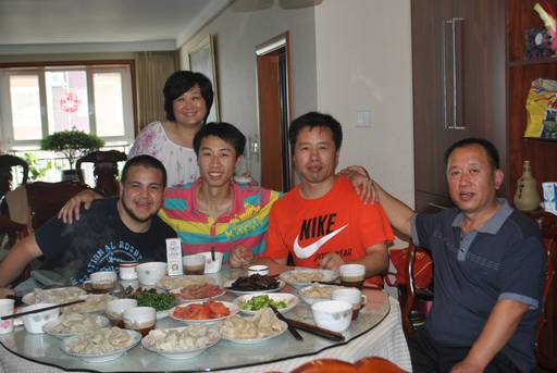 Mates同样是一名来自美国康伯斯维尔大学的学生,他来到位于河北省保定市刘奇同学的家中。刘奇同学的父亲是一名书法爱好者,他向这位巴西同学讲解了中国书法简单的书写方法,并介绍了几位中国著名书法家的作品。中午,Mates和刘奇的家人一起吃饺子,感受中国家庭的热情和温暖。临走时,刘奇的父母将保定的地方特产“健康球”、一幅精美的书法作品以及一份工艺剪纸作为礼物送给了Mates。