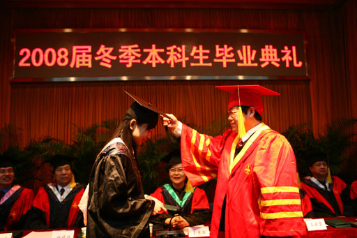 仪式上,副院长杜晓林宣读了“关于2008届冬季本科学生毕业和授予学士学位的决定”,并对顺利完成学业,即将走上工作岗位的毕业生表示祝贺。校领导为毕业生代表颁发了毕业证书。