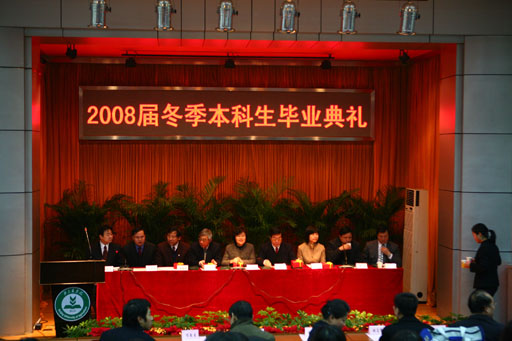 1月18日,2008届冬季本科生毕业典礼暨学士学位授予仪式在小报告厅举行。学校领导王慧敏、王有年、罗维忠、王晓霞、杜晓林、郑一淳出席典礼。学生处处长韩宝平主持仪式。