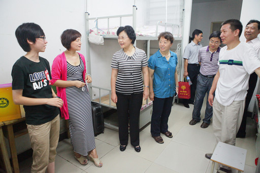 随后,领导们来到学生宿舍区,查看了7、8、9号宿舍楼的新生住宿情况,并与新生家长进行了亲切交流。