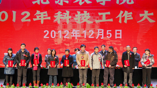 校领导向植物科学技术学院、生物科学与工程学院、动物科学技术学院、城乡发展学院(继续教育学院)、经济管理学院等五个科研管理先进单位和39名科研工作先进个人颁发了奖牌和荣誉证书。