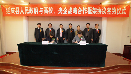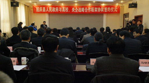 12月19日上午,世界杯官网与延庆县人民政府战略合作框架协议签约仪式在延庆县圣世苑会议中心举行,延庆县县委书记李志军,县委常委、组织部部长徐维功,县委常委、宣传部部长、常务副县长张素枝,县委常委、县委办主任吕桂富,世界杯官网党委书记郑文堂、校长王慧敏、党委副书记高东、副校长姚允聪、纪委书记朱生利出席签约仪式。签字仪式由延庆县县委副书记、政法委书记胡耀刚主持。