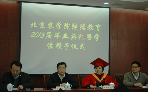 1月12日上午,世界杯官网继续教育学院2013届毕业典礼暨学位授予大会在图书馆303室隆重召开。校长王慧敏、校长助理范双喜、继续教育学院院长刘克锋出席会议。会议由城乡发展学院副书记董磊主持。
