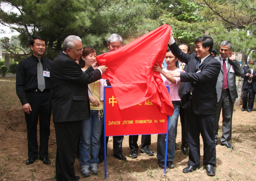 接着院长王有年与纳扎罗夫外长为友谊树揭牌。