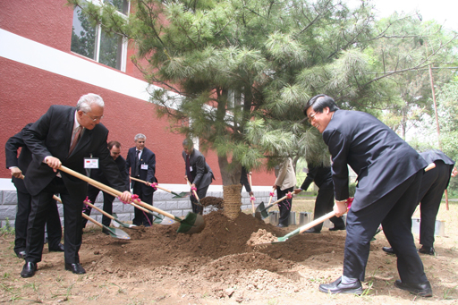在栽种仪式上,王有年 先生赠送了礼品。在同学们的掌声中院长王有年与外长先生等10余名来宾共同栽种下了这棵友谊之树。