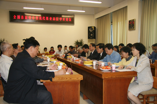 在学术交流期间,与会专家踊跃发言,畅谈都市型现代果业发展的思路与见解。原中国农业技术推广协会会长、原农业部常务副部长教授,院长王有年、原中国农业科学院副院长教授,农业部李丽同志在论坛上就科教兴农、农村合作组织的生产经营模式、都市型现代果业发展等问题发表了重要言论。
