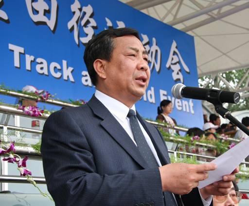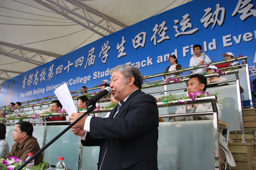 北京市教委副主任杜松彭宣布首都高校第四十四届学生田径运动会胜利闭幕。