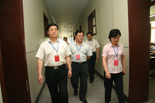 考试期间,世界杯官网副院长、四六级考试管理领导小组组长杜晓林陪同党委书记王慧敏、院长王有年和市教委四六级考试巡视员亲临考场看望考生并巡视考场情况。