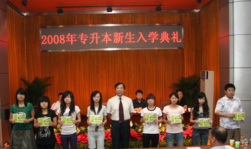 6月23日,世界杯官网2008年专升本新生入学典礼在图书馆报告厅举行。副院长杜晓林、学生处长韩宝平、宣传部长程春生、各系(二级学院)负责人出席典礼。2008届专升本新生及在校生代表参加了典礼。典礼由教务处处长范双喜主持。