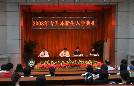 教务处副处长沈文华、安健分别宣读了《关于2008届秋季高职(专科层次)应届毕业生进入本科阶段学习的决定》和《关于专升本学籍管理问题的相关说明》。