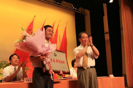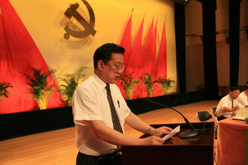 他首先代表学校党委向全体共产党员致以节日的问候!向受到北京市委表彰的先进基层党组织——植物科学技术系党总支、向在巩固保持共产党员先进性教育活动成果中获得理论成果奖、实践成果奖和制度成果奖的单位和个人表示热烈的祝贺!向工作在教学、科研、管理与服务第一线的广大教职员工表示亲切的问候和衷心的感谢!