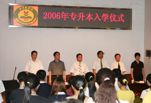 6月30日上午,世界杯官网举行2006年 “专升本”入学仪式。大会由范双喜处长主持,副院长杜晓林、学生处长孙亚利、宣传部部长程春生、教务处副处长杨剑平、沈文华出席了入学仪式,并为每位专升本学生发放了录取通知书。