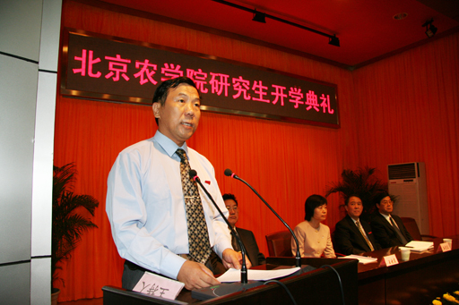 开学典礼在庄严肃穆的国歌声中拉开帷幕。2005级果树学专业研究生王美超代表在校研究生、2006级临床兽医学专业研究生刘京威代表研究生新生、动科系 老师代表在校教师分别做了发言。