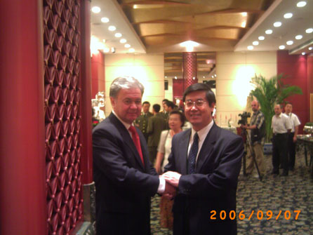 9月7日下午,院长王有年、政法系主任华玉武、党政办副主任郑祖池和植物科技系副主任张喜春应塔吉克斯坦共和国驻华特命全权大使塔吉克斯坦共和国驻华大使拉· 阿利莫夫的盛情邀请,出席了在亮马河大厦举行的塔吉克斯坦共和国独立15周年的庆祝活动。
