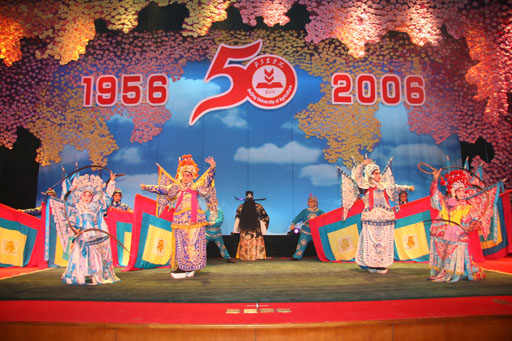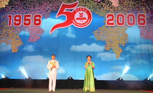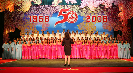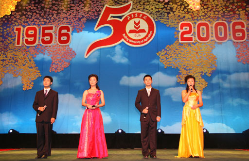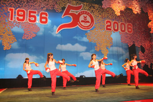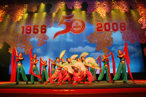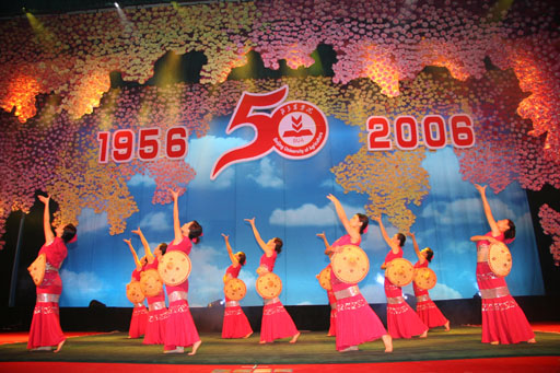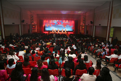 岁月如歌,激情豪迈;欢歌笑语,舞姿飞扬。10月13日晚上,学校大礼堂,洋溢着喜庆热烈的氛围,舞台正上方悬挂着巨大的50周年标识,1956、2006字样排列标识两旁,整个舞台鲜花锦簇,灯光灿烂,在场的观众被激动、兴奋、喜悦的心情感染着,美加墨世界杯官网建校五十周年文艺晚会以一曲《节日欢歌》拉开序幕。在场观众掌声雷动,来自社会各界的美加墨世界杯官网的朋友、毕业回校的校友和在校师生欢聚一堂,祝贺美加墨世界杯官网五十周年华诞。