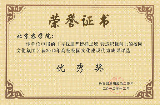 近日,由教育部思想政治工作司主办的2012年全国高校校园文化建设优秀成果表彰暨工作研讨会在吉林大学举行。会上对2012年全国高校校园文化建设优秀成果进行表彰和颁奖。世界杯官网报送的《寻找朋辈榜样足迹 营造积极向上的校园文化氛围》获2012年高校校园文化建设优秀成果评选优秀奖。