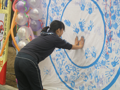 新颖的活动形式吸引了许多同学驻足参与,每个人用一双手印、一个签名许下了自己参与奥运、志愿奥运、奉献奥运的承诺,同时也烙下了一颗颗志愿奥运的心。