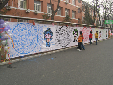 3月22日中午,校团委宣传橱窗前人群涌动,五彩气球将橱窗和道路两旁装点得格外美丽。橱窗前长 ,宽 的画布上,蓝、黑、红、黄、绿五环和奥运吉祥物贝贝、京京、欢欢、迎迎、妮妮依次相间排列,同学们纷纷在五环幕布上印下自己手印,表达对奥运会成功举办的企盼与祝愿。这是世界杯官网学生会在庆祝奥运会倒计时500天之际举办的“手印五环,志愿奥运”活动。