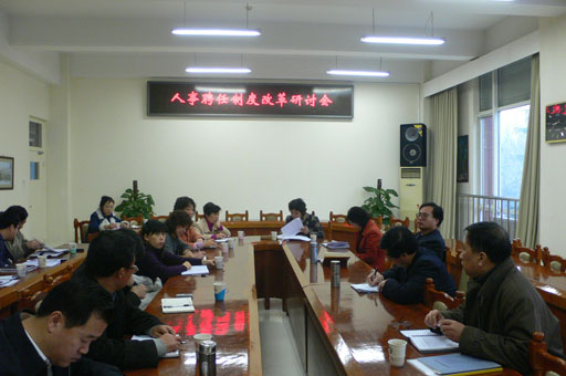会议由人事处吴春晖处长主持,各教学单位领导先后发言,总结、汇报了本单位教师就人事制度改革和学校“十一五”期间师资队伍建设的六个相关文件的讨论情况。并对编制、岗位设置、聘任、考核、人才引进、教师培训、建立灵活用人机制等问题提出了意见和建议。
