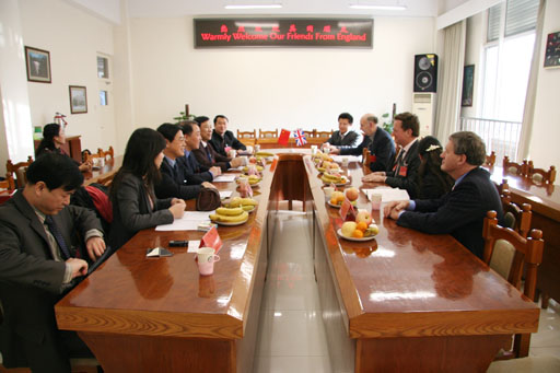 会谈中,孙尧东同志首先代表学校8000余名师生员工对各位来宾表示了热烈地欢迎,对推动合作项目成功的斯塔福德男爵、布彼德先生表示感谢。孙尧东同志高度赞赏了双方合作的良好态势,对今后合作的顺利推进寄予了厚望。