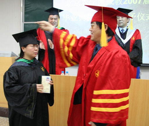 仪式由继续教育学院院长张子安主持。会议在雄壮的国歌声中正式开始。副院长杜晓林宣布了“关于2007届成人高等教育本科毕业生颁发毕业证书暨授予学士学位的决定”,继续教育学院院长张子安宣读了“关于授予2007届王红等11人优秀毕业生称号的决定”。毕业生代表王红、赵坤,在校生代表彭兴国,教师代表周先林分别发言。