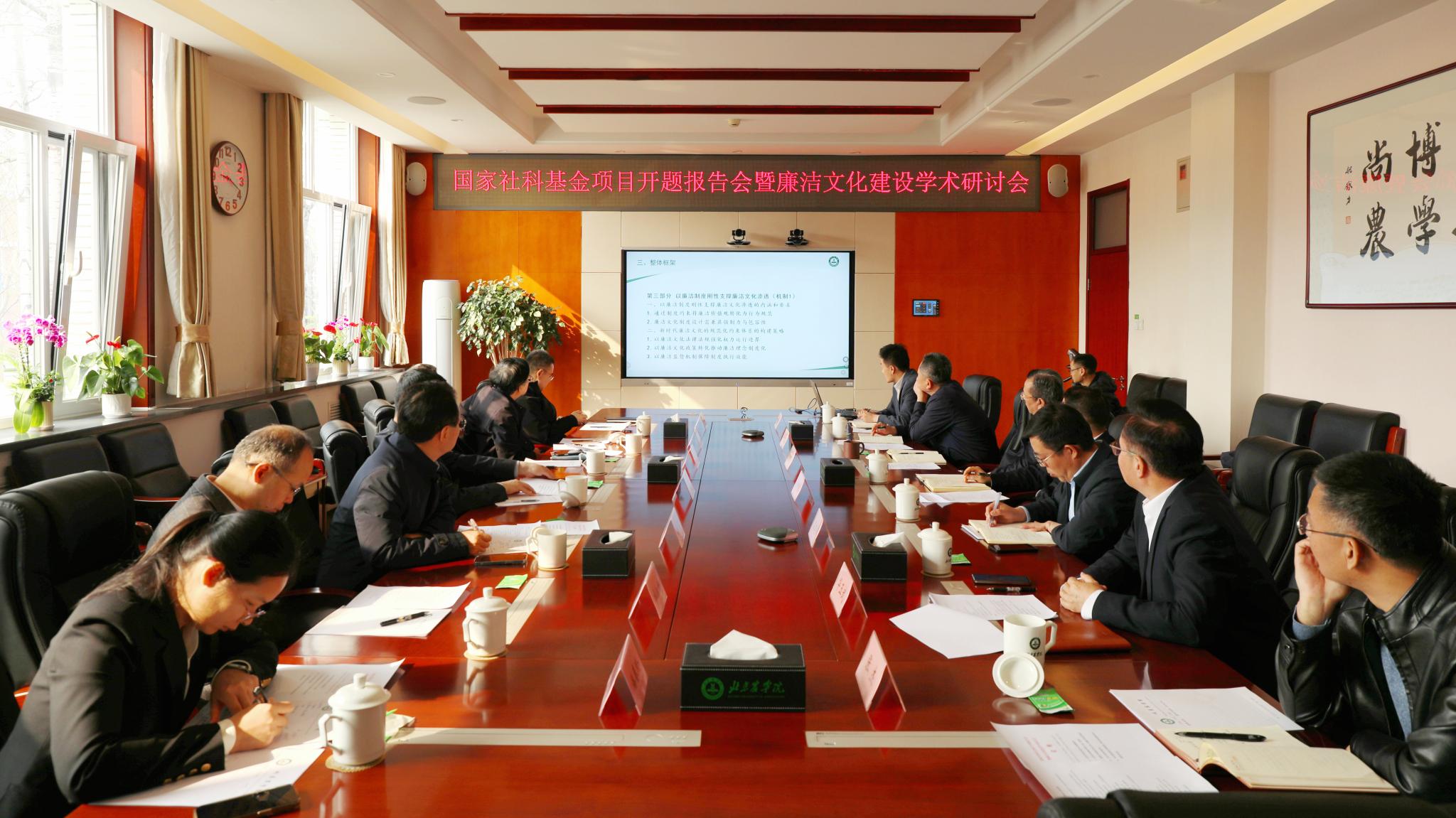 3月24日,学校召开国家社科基金项目开题报告会暨廉洁文化建设学术研讨会。学校党委书记赵锋出席会议并致辞,市纪委监委驻市委教育工委纪检监察组组长易帅东出席会议并讲话,清华大学党委副书记、纪检监察研究院过勇教授,北京大学中国政治学研究中心学术委员会主任、中国廉政学会会长何增科教授,中国人民大学纪检监察学院倪星教授,北京航空航天大学马克思主义学院王春玺教授,清华大学马克思主义学院宋伟教授,燕山大学廉政与治理研究中心主任、公共管理学院杜治洲教授,中国农业大学马克思主义学院潘春玲副教授等专家学者出席会议并针对课题研究和加强廉洁文化建设提出意见建议。学校党委常委、纪委书记吴君楚以及党委宣传部、纪检监察办公室、科技处、马克思主义学院等相关部门负责人和课题组成员参加会议。