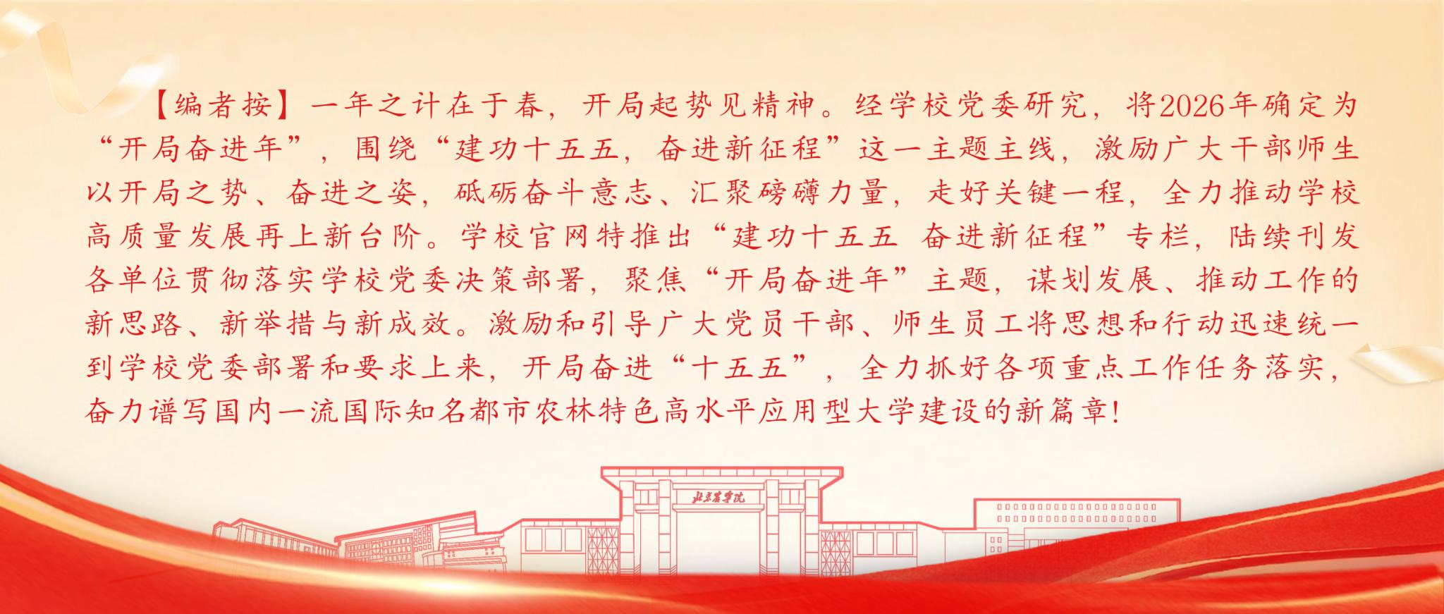 “学院将聚焦学校和学院年度重点工作任务,全面贯彻落实学校党委部署要求,围绕‘建功十五五,奋进新征程’主题主线,以‘开局奋进年’为抓手,全力推动学院党建与思想政治工作、学科建设、人才培养、科研与社会服务再上新台阶!”文法与城乡发展学院党委书记赵和文表示。
