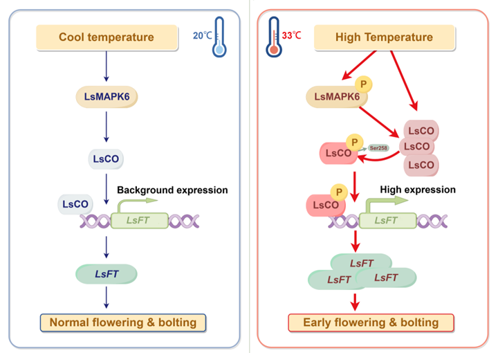图1 LsMAPK6-LsCO-LsFT模块调控生菜高温抽薹的分子模型