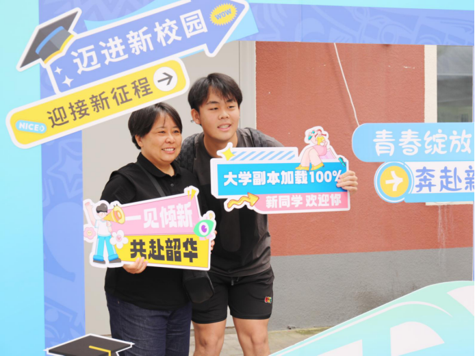 迎新现场,指引牌清晰醒目,志愿者们身披绶带穿梭其间,从行李搬运、报到注册到宿舍引导,暖心服务全程在线,为新生及家长提供贴心帮助。“同学这边走,档案材料请交给我”“宿舍在7号楼,我帮你拿行李”……一句句热情的指引、一次次暖心的援手,让初来乍到的新生倍感亲切。