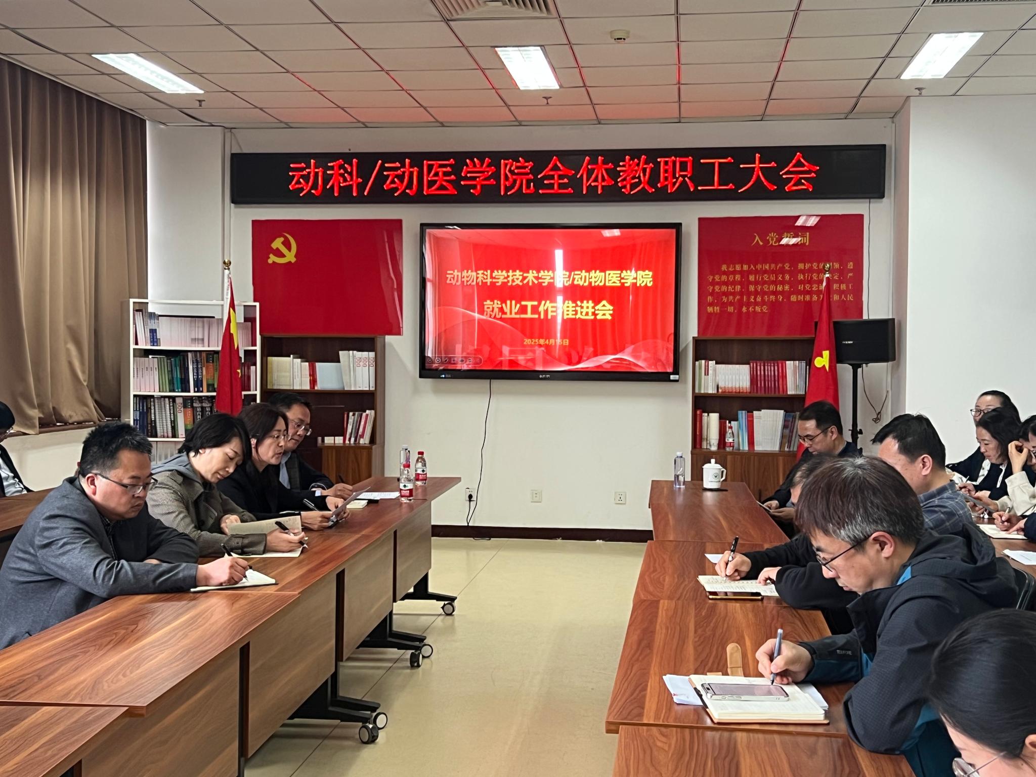 4月15日,动物科学技术学院/动物医学院召开就业工作推进会,对2025年毕业生就业工作进行再推进,再部署。学院领导班子成员、全体教师参加会议,会议由学院党委书记党登峰主持。