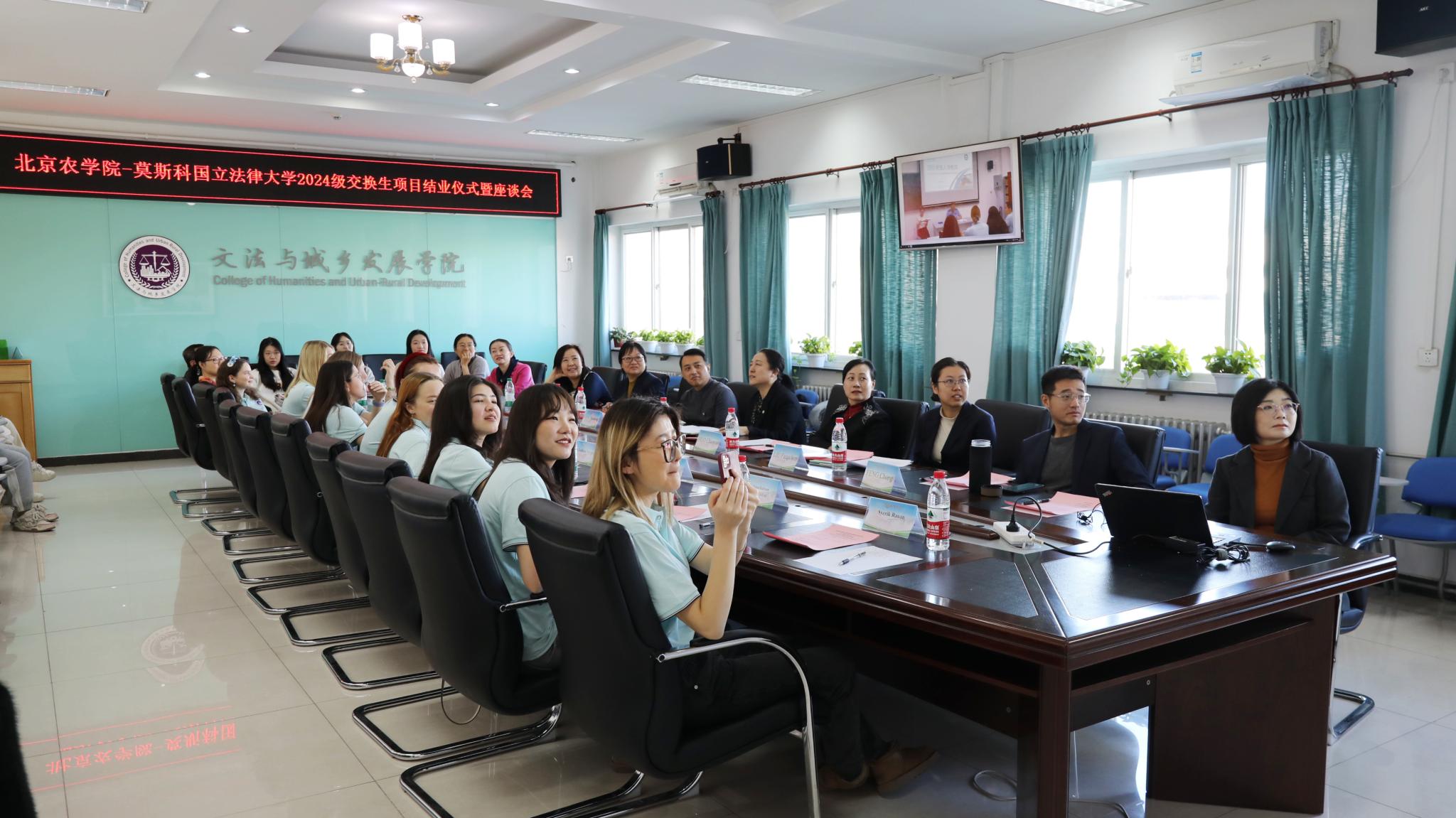 12月18日,莫斯科国立法律大学2024级交换生项目结业典礼在文发楼举办。国际合作与交流处处长杨宝东、文法与城乡发展学院院长韩芳、教师代表和志愿者代表参加此次活动。会议由韩芳主持。