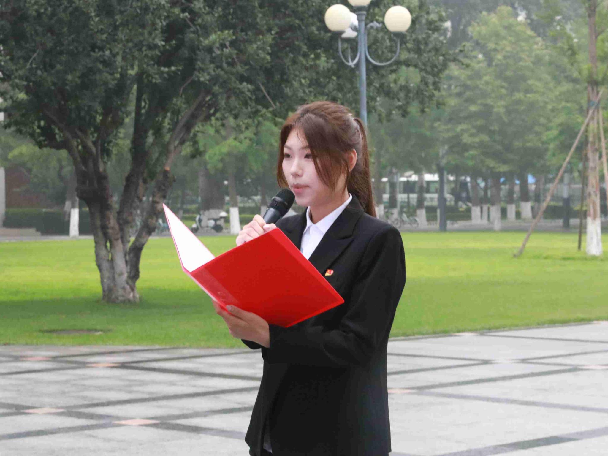 仪式在国歌声中拉开序幕。全体师生肃立,注视着五星红旗冉冉升起,心中充满了对祖国的无限热爱和崇高敬意。动物科学技术学院王凯明领誓,新老党员面向党旗,庄严宣誓,誓言铿锵有力,回荡在广场上空。