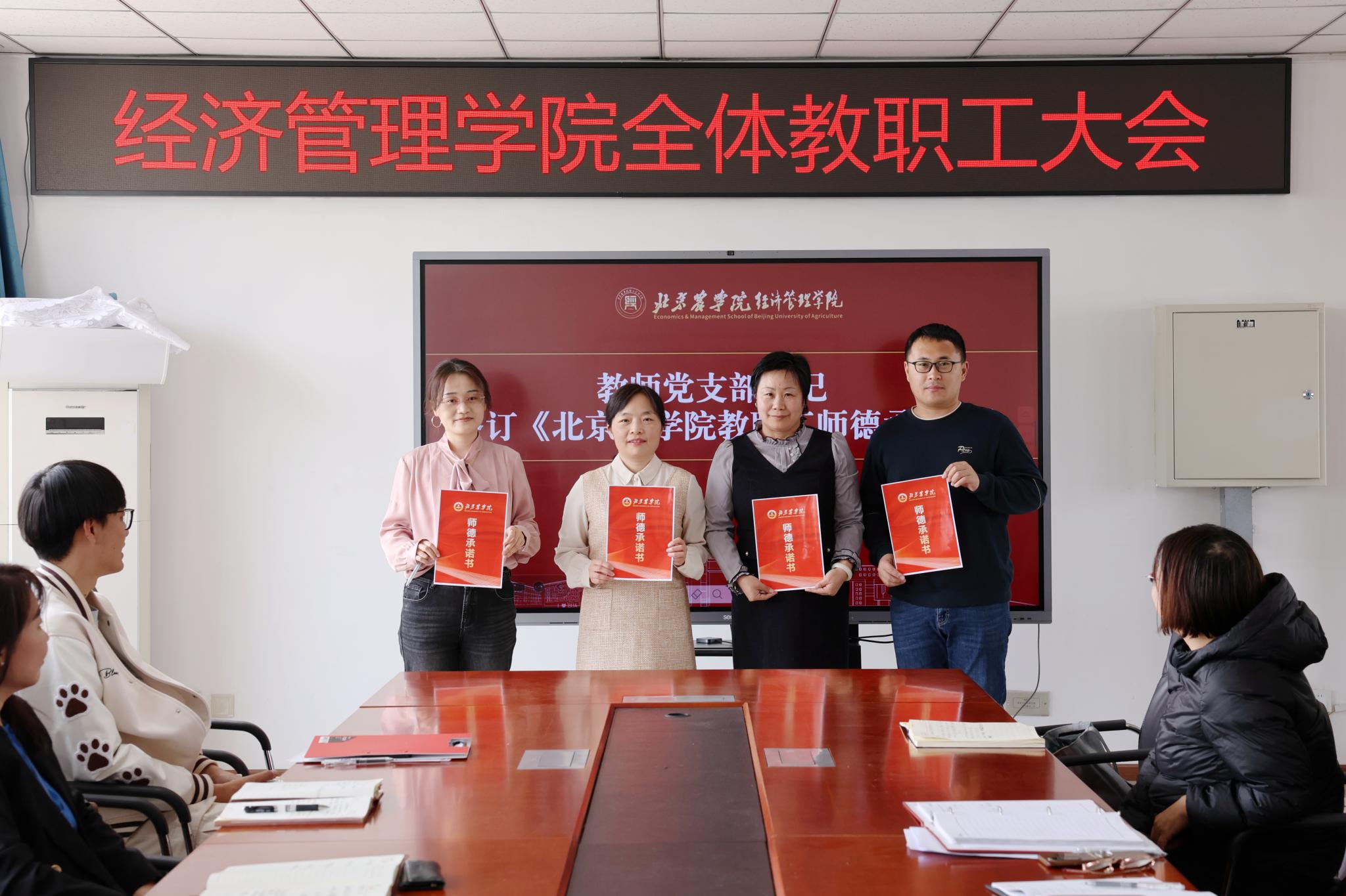 会议集中学习了学校教职工师德承诺书主要内容,四位教师党支部书记作为教师代表签订《美加墨世界杯官网教职工师德承诺书》。