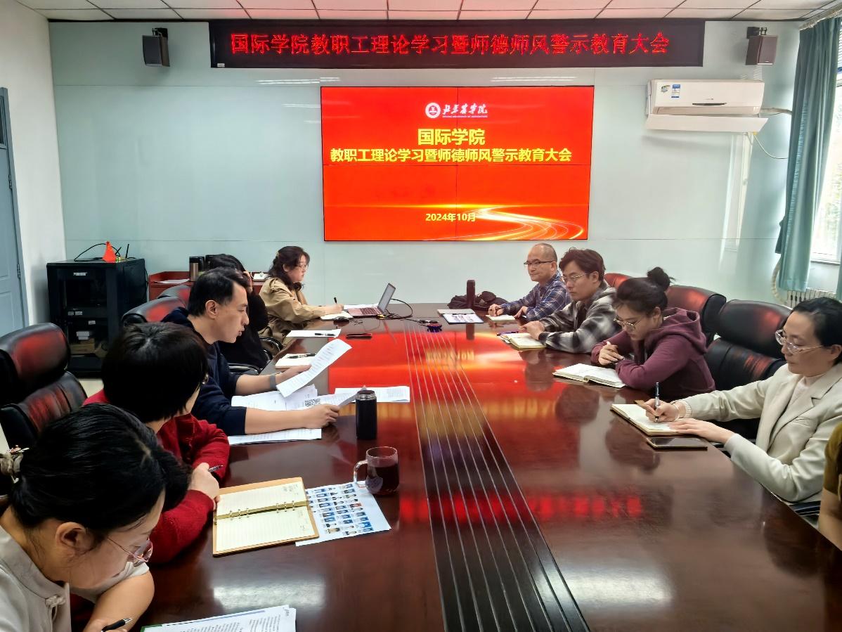 近日,国际学院党总支召开全体教职工大会,深入学习党的二十届三中全会精神和习近平总书记关于教育的重要论述,重点开展教师思想政治教育和师德师风专项学习。会议由党总支书记杨宝东主持。