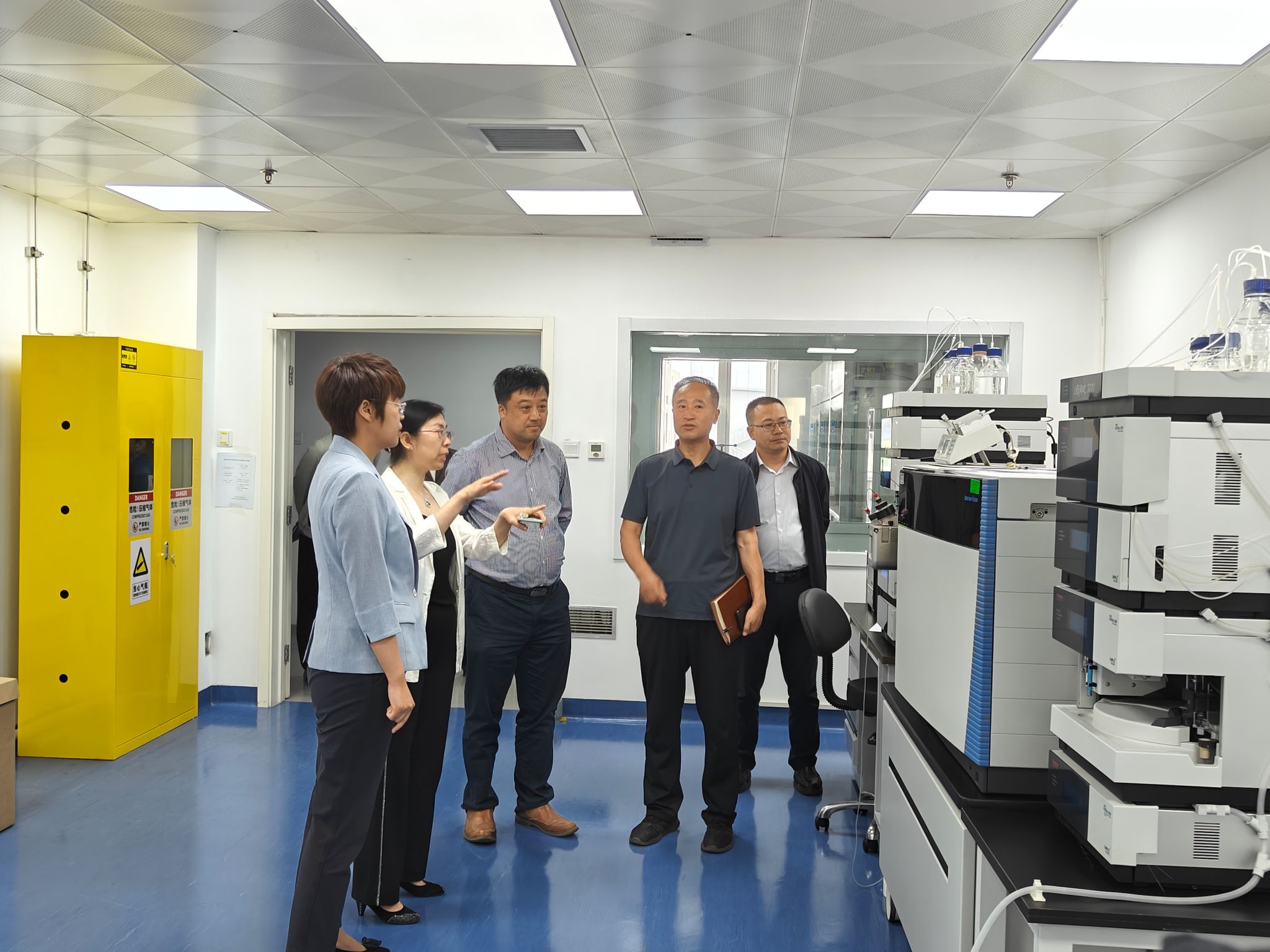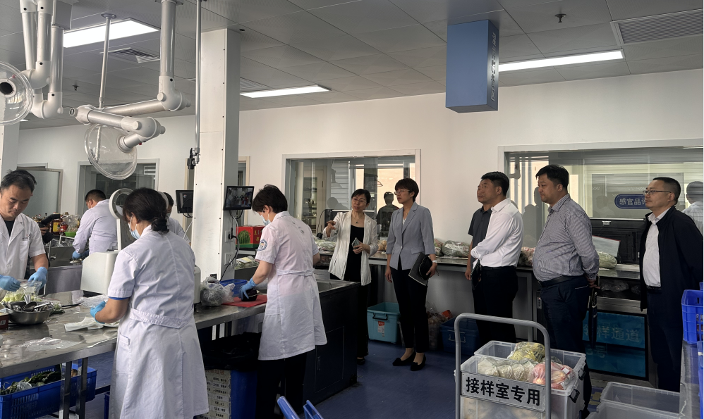 座谈会前,市食品检验研究院副院长姜洁带领大家参观实验室和工作区,介绍研究院在食品安全科技为民服务方面取得的丰硕成果。