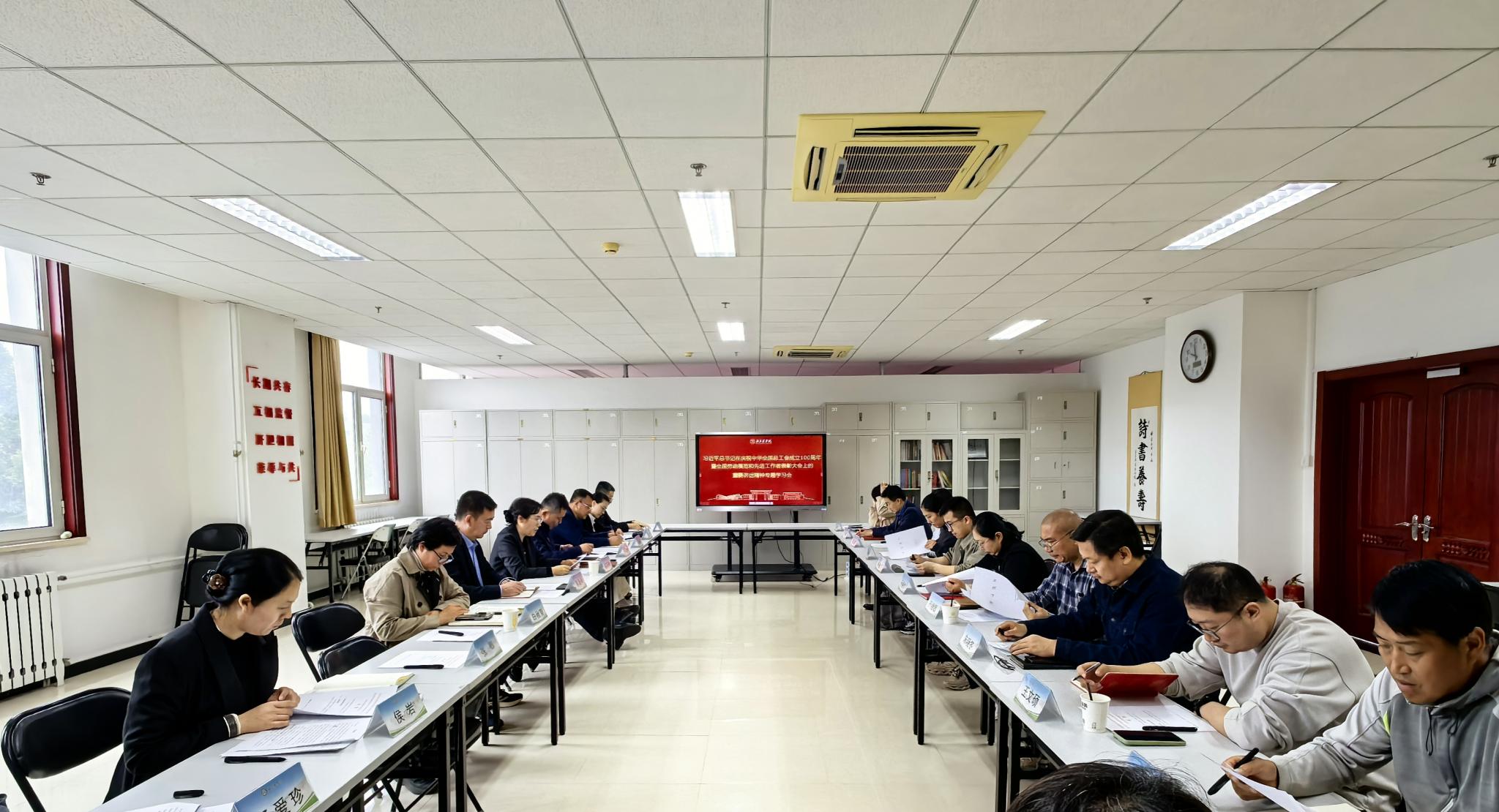 近日,校工会组织召开工会干部专题学习会议,认真学习习近平总书记在庆祝中华全国总工会成立100周年暨全国劳动模范和先进工作者表彰大会上的重要讲话精神。